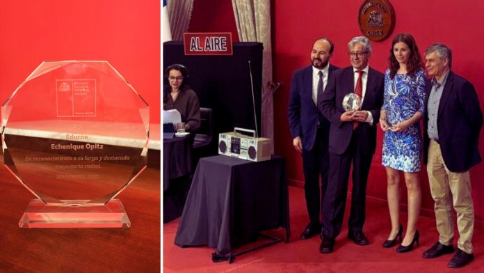 La tarde de este jueves en el Palacio de La Moneda se desarrolló una ceremonia en la que se distinguió a una treintena de trabajadores radiales de todo Chile, desde Arica hasta Punta Arenas. En la ocasión, se entregó un reconocimiento a la trayectoria de Edurne Echenique Opitz, madre de Carolina Olave Echenique, en representación de Radio Austral de Valdivia.