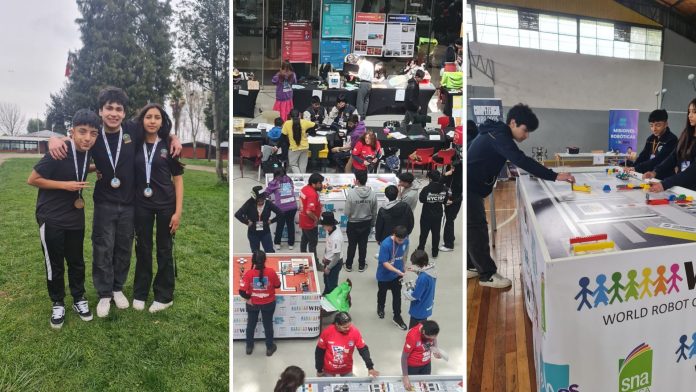 Maite Guerra, Emiliano Faúndez y Felipe Bravo, estudiantes de Enseñanza Media del Complejo Educacional Tierra de Esperanza, en la localidad rural de Neltume, comuna de Panguipulli, representaron a la Región de Los Ríos en la final nacional de la World Robot Olympiad (WRO) 2025.