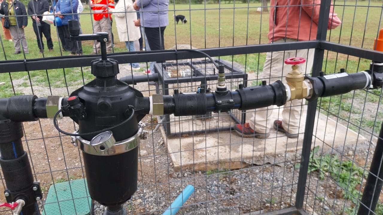 El sistema contempla un pozo profundo de 48 metros de profundidad y 6 pulgadas de diámetro, con un caudal estimado de 6 litros por segundo, complementado con un sistema fotovoltaico off-grid de 56 paneles solares de 550 Wp y un variador de frecuencia solar de 11 kW, que permitirá reducir los costos energéticos y aumentar la eficiencia del riego.