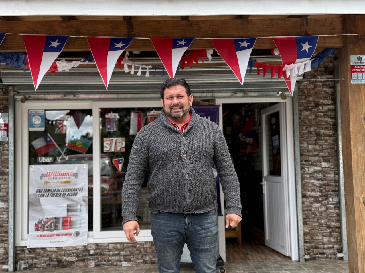 “Yo con el dueño de la empresa, José, nos conocemos hace harto tiempo acá en Puerto Nuevo. Él tiene un taller mecánico y algún día habíamos hablado de hacer algo, vender repuestos y todo ese tipo de cosas. Es un complemento directo del taller”, explica Roberto Meriches, encargado del local y dirigente social del sector. De los viajes constantes a Osorno, Puerto Montt y Temuco para abastecer el taller surgió la idea de emprender. “Dijimos: ‘José, estamos puro creciendo, hagamos algo’, y yo le dije: ‘Ya, yo me hago cargo’. Todo lo que se ve aquí en el local lo hice con mis propias manos”, agrega.