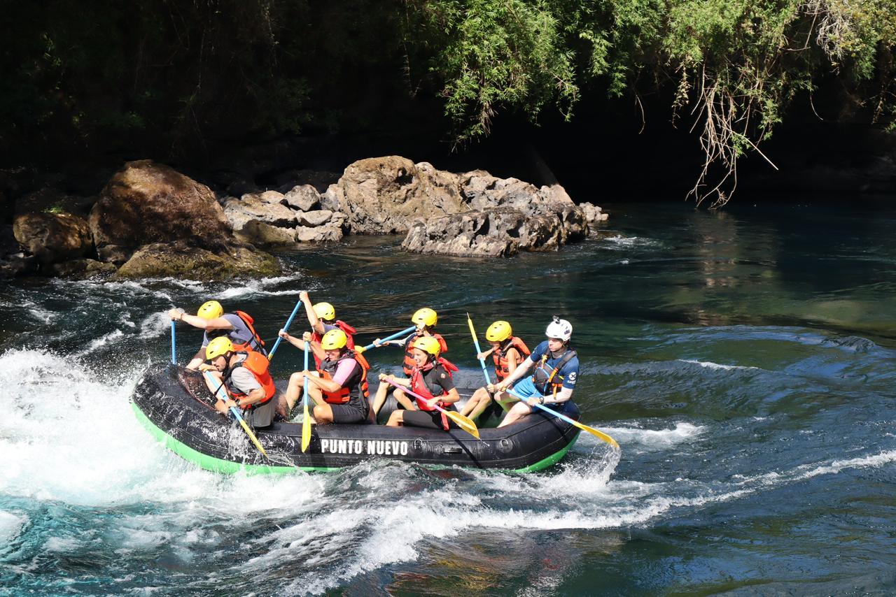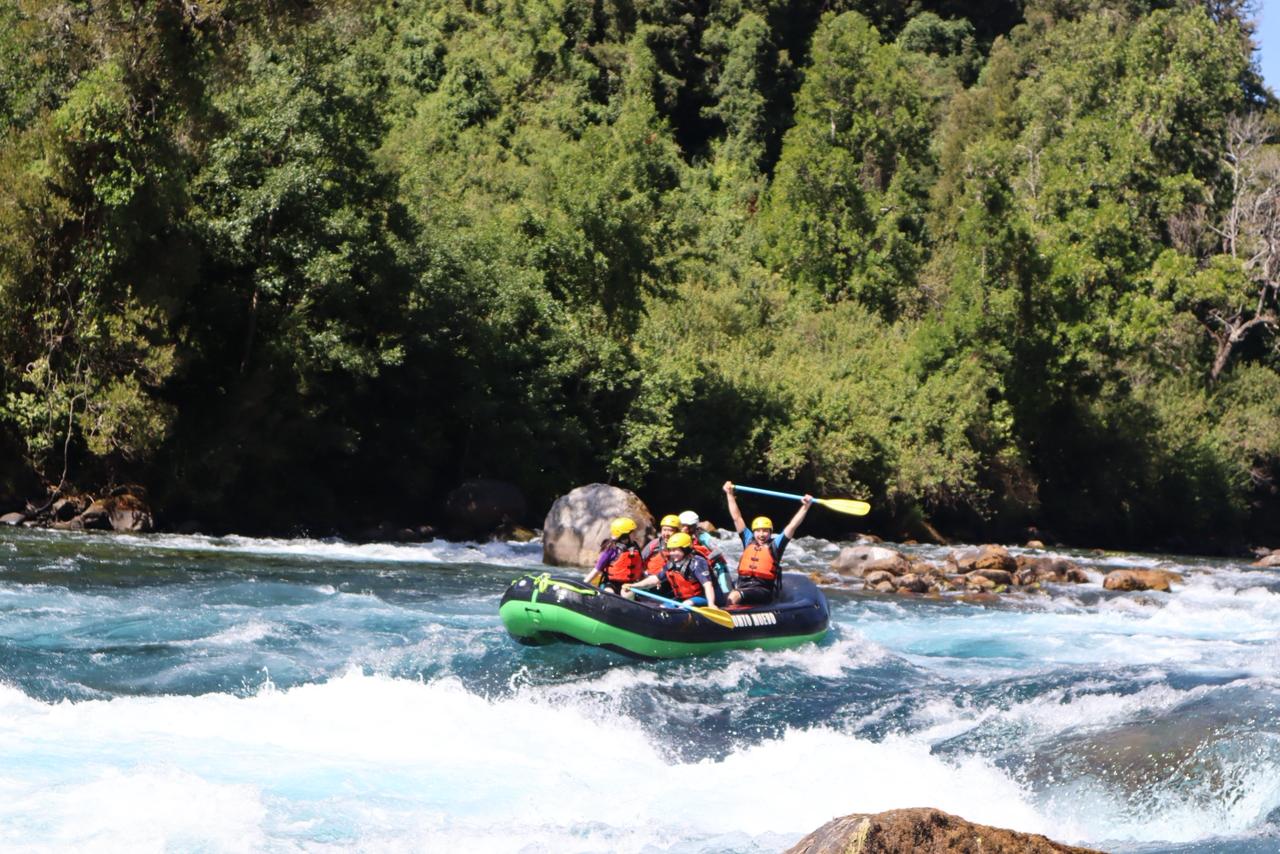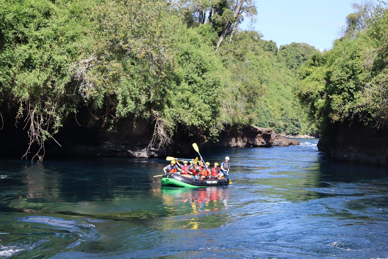 El corazón del proyecto es el rafting. Desde la playa de Puerto Nuevo, los botes avanzan por aguas tranquilas y rápidos familiares que permiten vivir la experiencia incluso a quienes nunca han subido a una balsa. “Nuestra empresa se dedica a llevar gente a hacer rafting en el río Bueno, partiendo desde la desembocadura del lago Ranco hasta Puerto Lapi, que son alrededor de siete kilómetros de río”, explica Garrido.