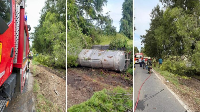 La mañana de este domingo 7 de diciembre, un camión destinado al transporte de riles volcó en la ruta Reumén–Nontuelá, dejando a su conductor lesionado. En el lugar trabajó el Cuerpo de Bomberos de Paillaco junto a Bomberos de Reumén, personal SAMU y Carabineros para atender la emergencia y controlar la situación.