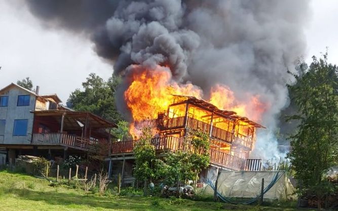 Un incendio registrado leste domingo 7 de diciembre dejó pérdidas totales en una vivienda del sector Cun Cun, en la comuna de Futrono. La emergencia fue reportada a un costado de las cabañas Lahuenco, donde las llamas envolvieron rápidamente la estructura de una casa habitación.
