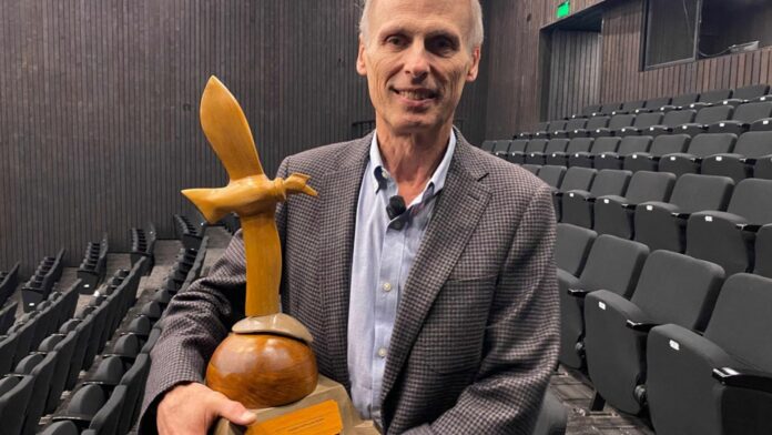 Cada homenajeado recibió una escultura en madera que replica el “Cóndor de los Vientos”, monumento emblemático que representa la fuerza y proyección del trabajo forestal chileno, hacia nuevos horizontes de desarrollo.