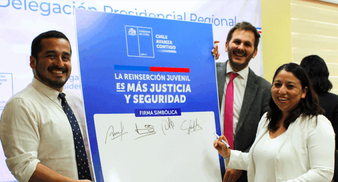 Al final de la sesión, los integrantes del COR firmaron un afiche con la sigla “La Reinserción Juvenil es más justicia y seguridad”, la cual simboliza el compromiso de las instituciones y sus integrantes para dar inicio a la Política de Reinserción Social Juvenil en la región.