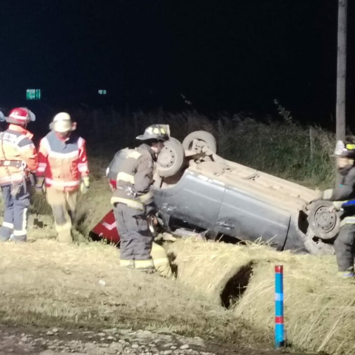 De acuerdo con los antecedentes preliminares, “aparentemente el conductor perdió el control del vehículo y volcó a un costado de la ruta”, resultando “dos personas lesionadas, una femenina y un masculino”. Uno de los ocupantes quedó atrapado al interior del automóvil, situación que obligó a la intervención especializada de Bomberos. “Uno de los lesionados quedó atrapado al interior del vehículo y no podía salir por sus propios medios, por lo que fue necesario realizar maniobras con herramientas hidráulicas para poder liberar a este paciente”, explicó el oficial.