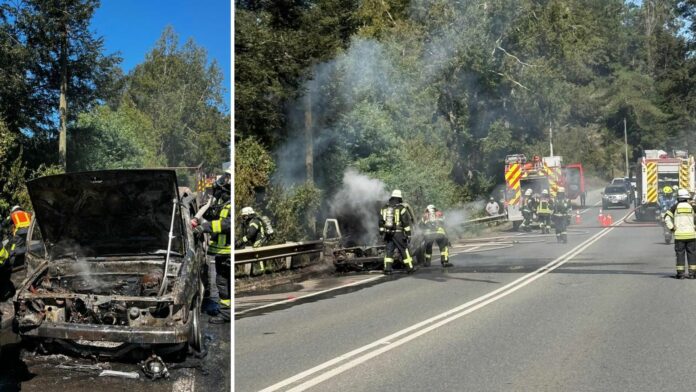 Un incendio vehicular movilizó la mañana de este domingo 22 de febrero al Cuerpo de Bomberos de Paillaco hasta la Ruta T-206, en el tramo que une Paillaco con Valdivia.