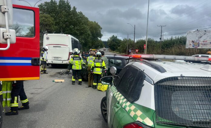 De acuerdo con los antecedentes preliminares, un vehículo menor impactó en la parte posterior a un bus que efectuaba un viraje para ingresar a la comuna. Las circunstancias exactas que originaron el accidente son materia de investigación.