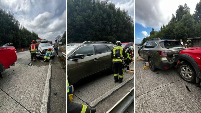 Una colisión múltiple de vehículos se registró la tarde de este domingo 1 de marzo en la Ruta 5, a la altura del sector Cuyumán, en la comuna de Paillaco, lo que motivó un amplio despliegue de equipos de emergencia.