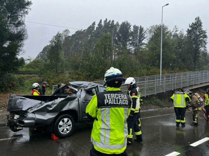 De acuerdo con la información preliminar, el hecho correspondió al choque de una camioneta contra una barrera de contención, impacto que derivó en el posterior volcamiento del vehículo.