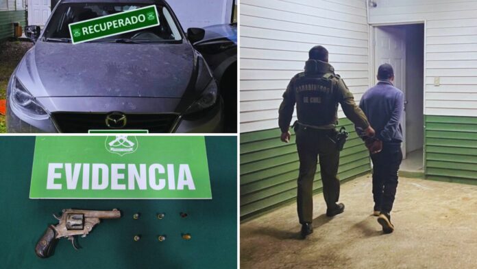 Tras la detención, Carabineros incautó el revólver utilizado en el ataque, el cual mantenía municiones en su interior y era portado de manera ilegal. Asimismo, se estableció que el automóvil involucrado mantenía encargo vigente por robo y circulaba con placas patentes falsas o adulteradas.