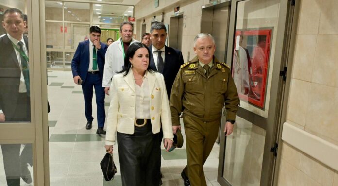 El General Director de Carabineros, Marcelo Araya, junto a la ministra de Seguridad, Trinidad Steinert, llegaron durante esta jornada hasta el Hospital de Puerto Montt para conocer de primera fuente la evolución del carabinero que resultó gravemente herido durante un procedimiento policial en la comuna de Puerto Varas.