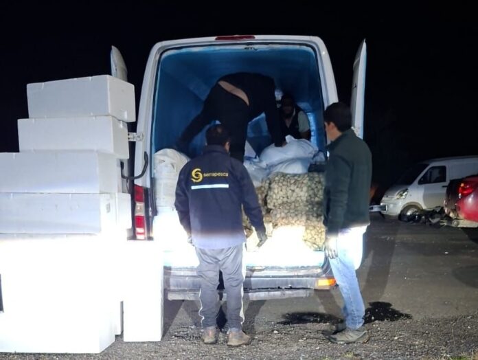 Tras la revisión del cargamento, se determinó que el furgón transportaba 173,45 kilos de merluza austral y 50,8 kilos de congrio dorado sin acreditación de origen legal. Asimismo, trasladaba 800 kilos de almejas, 1.500 kilos de cholgas y 150 kilos de choro maltón que, si bien contaban con acreditación de origen, no disponían del certificado del análisis de Veneno Paralizante de los Moluscos (VPM), requisito sanitario obligatorio para su comercialización.