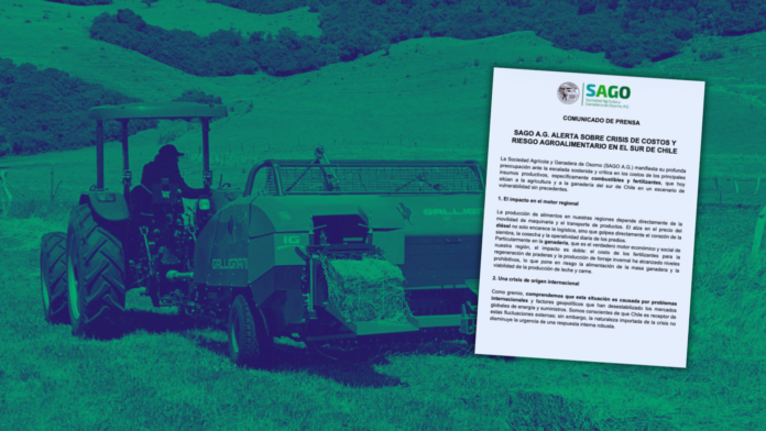 A través de un comunicado público emitido este 26 de marzo de 2026, la Sociedad Agrícola y Ganadera de Osorno (SAGO A.G.) alertó sobre una creciente crisis de costos que afecta al sector agropecuario del sur de Chile, advirtiendo un escenario de alta vulnerabilidad para la producción de alimentos.