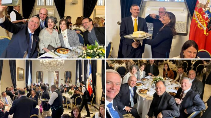 La actividad, que se habría desarrollado el viernes 10 de abril, reunió a excompañeros de Derecho de la Pontificia Universidad Católica en los salones de la casa de gobierno. Según los antecedentes, el menú contempló tartar de tomates, vino tinto, puré rústico y plateada al jugo.
