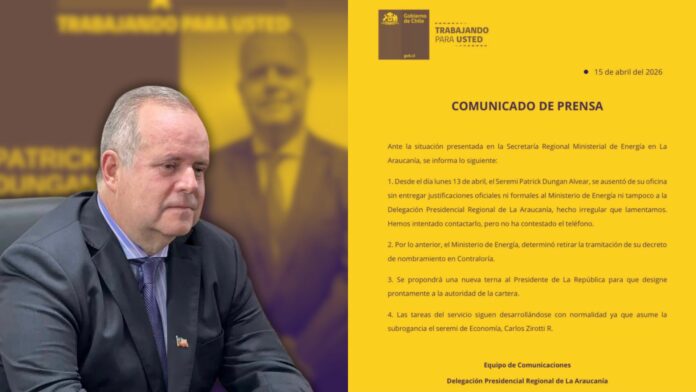 La Delegación Presidencial de La Araucanía confirmó que se dejó sin efecto el proceso de nombramiento del seremi de Energía, Patrick Dungan, tras perder todo tipo de contacto con la autoridad.